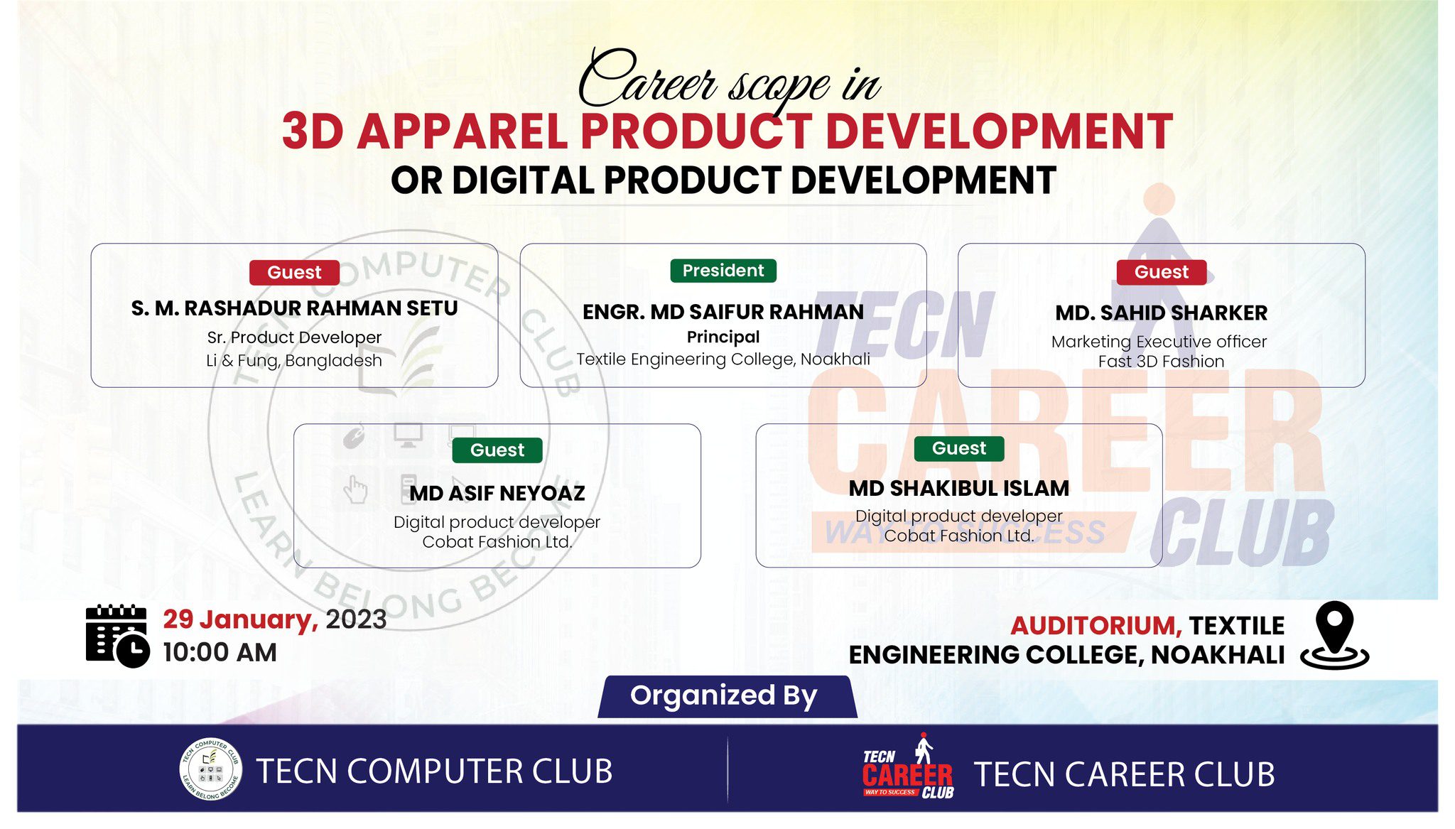 The journey of the ” TECN Computer club” started in 2017 with the 7th batch of TECN. The club belonged to “Arunodaya”, the mother club of Tecn. Realizing the critical importance of adopting along with upgrading technology. Our seventh batch of founding members introduced this club with its mission and vision all set. The club’s goal is to make a student skilled in various sectors, including content writing, photojournalism, video editing, UI/UX design, and graphics design, beyond academics.TECN Computer Club holds a high status as one of the most inspiring and admiring clubs in Textile Engineering College, Noakhali. So far, the computer club has launched and successfully completed various activities with the help of our beloved seniors, juniors, alumni, and respected teachers. The computer club is playing a pretty influential and pivotal role in digitizing the Campus.